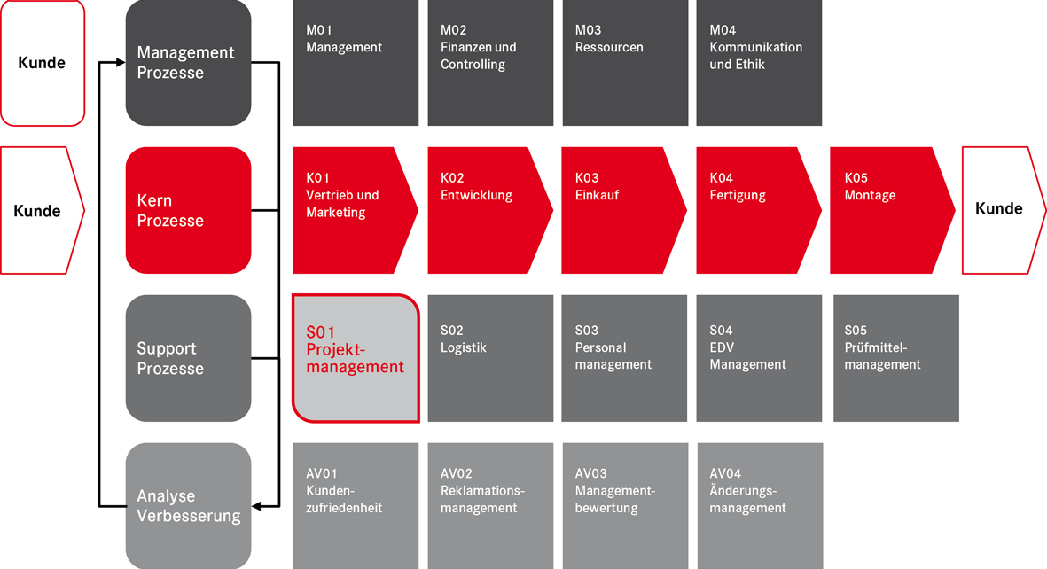 Sie erhalten ein strategiebasiertes Managementsystem mit Organisationsstruktur. Klare Schnittstellen und Aufgabenbeschreibungen sorgen dafür, dass die Geschäftsprozesse reibungslos ablaufen. So erreichen wir einen hohen Wirkungsgrad der Führungs-, Kern- und Unterstützungsprozesse.